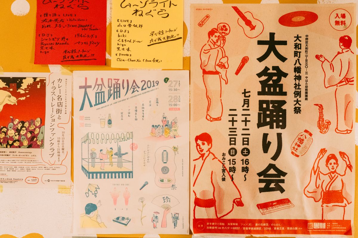 お店で流れている音楽、壁に飾られたフライヤー、思朗さんとの会話で話題に上がるアーティスト、それらすべてが「転がり続けてきた」産物だ。さらに言えば、音楽イベントやフェスへの出張営業では2人が日常的に好んで聴いていたり親交があったり、そういうアーティストのライブに触れることができる。それすらも〈ネグラ〉の体験の延長にあると言っていい。