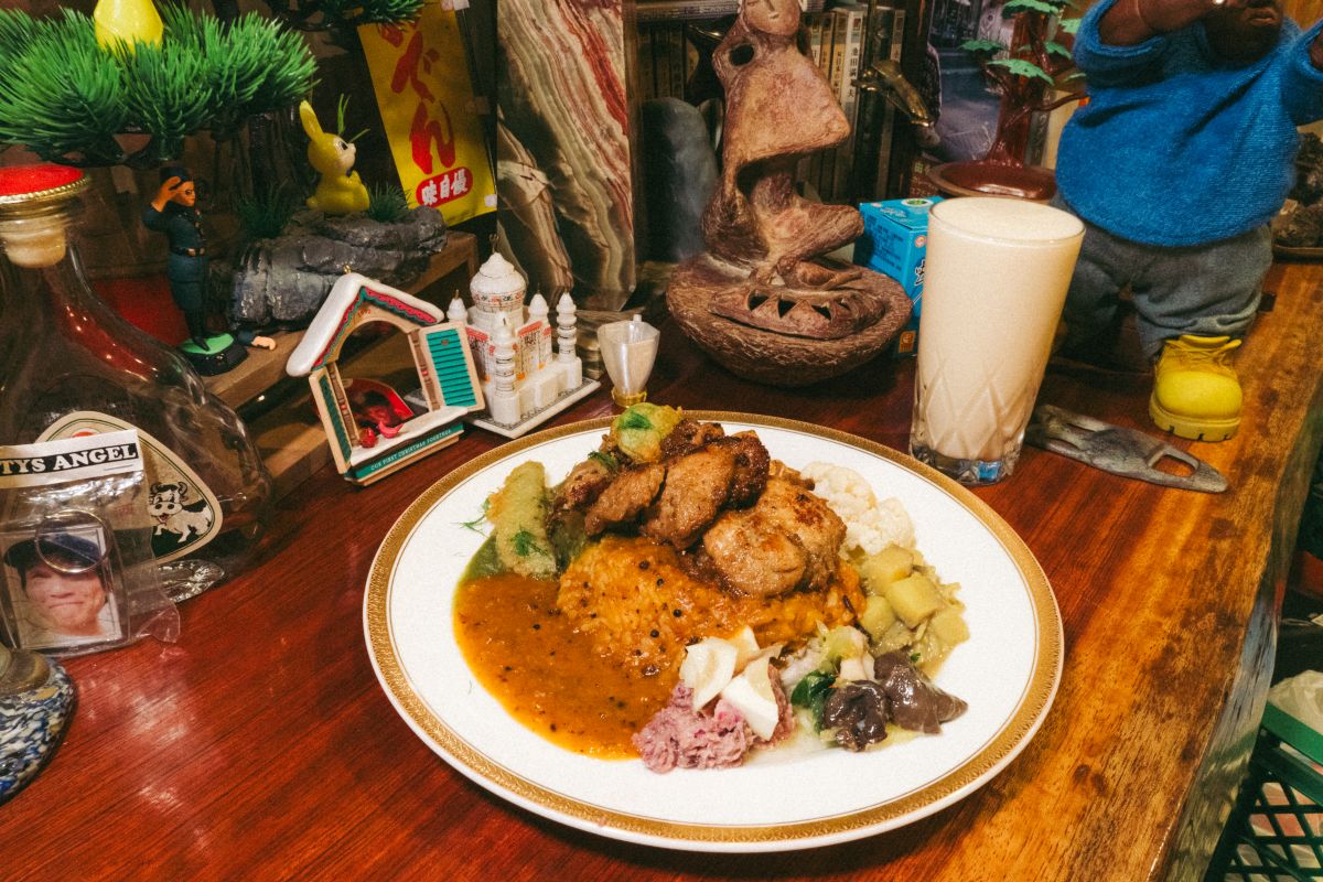 「美味しくて、雰囲気がいいお店って、日本中にいくらでもあるじゃないですか。それだけじゃ、お客さんが来てくれないんですよね。料理の専門家にはなり切れない僕たちにできることは、エンタメライクに楽しんでもらえるお店だなって。みんなで料理を囲んで、楽しむ空間が作りたいから。イメージしていたのは、大皿料理とか、おっきい食卓。時間によって、ドラをバンバン叩いて『できましたぁ!』みたいな。みんなで味わえる料理の中でも自由度が高くて、解釈を広げる余地があるものをやりたくて、カレーの道を選びました」