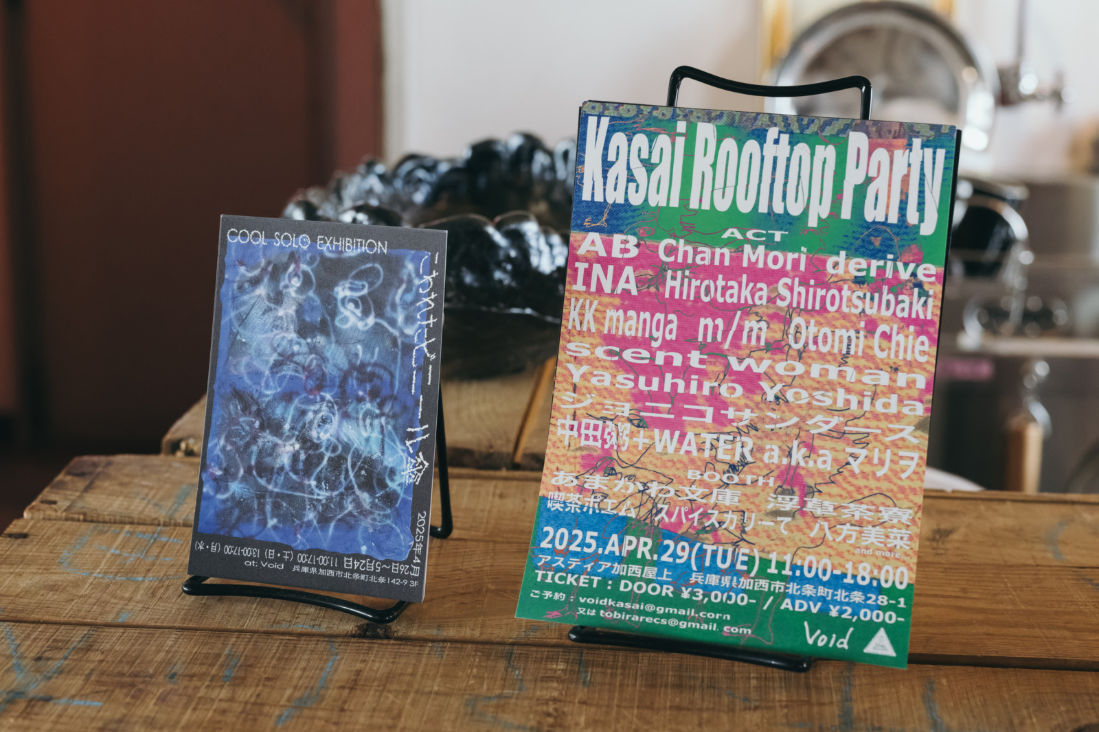 大阪や神戸三宮から西に向かって高速バスで約1時間半。あるいはJR加古川駅から粟生線、北条鉄道と乗り継いで約1時間。兵庫県加西市北条町にあるアートギャラリー〈Void〉は、都市部から近いとは言えない距離にある。〈Void〉の窓からはイオンモールが見え、その向こう側には美しい山並みが連なっている。まさしく「郊外」や「地方」と呼ぶにふさわしい風景だが、そこで繰り広げられる展覧会はストリートに根ざした表現が多く、先鋭的。また音楽イベントを行う際には、ライブハウス並みに大きな音量でハードコアや電子音楽が鳴っている。そして、中国・四国地方、九州、関東、海外からも人が訪れる。郊外なのに、まるで都会のアンダーグラウンドを思わせる場所だ。