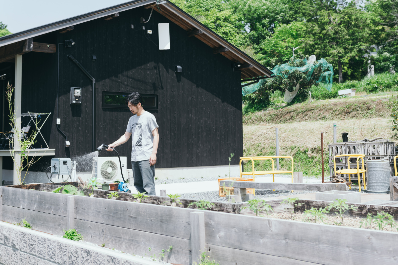 「僕は経験したことのない仕事に興味があるんです」という伊藤。ここ半年ほどは、木立での業務量を減らし、加西市内の田園エリアに位置する一棟貸しの宿泊施設〈YASURAGI〉を妻と運営している。