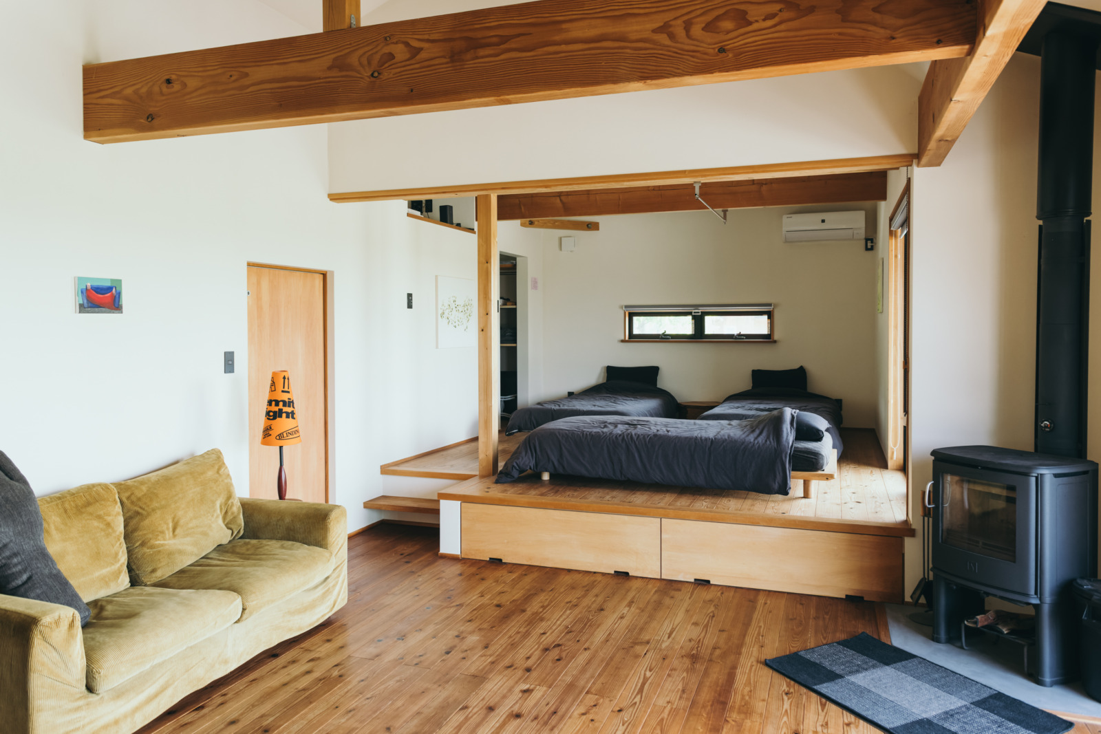 「建築や内装の仕事の場合、関西一円をあちこち移動して仕事することになるんです。移動したくない、ずっと加西にいたいという気持ちになってきて。子供が増えた(第二・三子が双子)というのも、移動したくない理由の一つで。もともとゲストや家族を泊めるために持っていた家を改装して、旅館業の許可も取って、一棟貸しの宿を始めてみました。ありがたいことに、毎週末宿泊客が途切れず続いていますね」