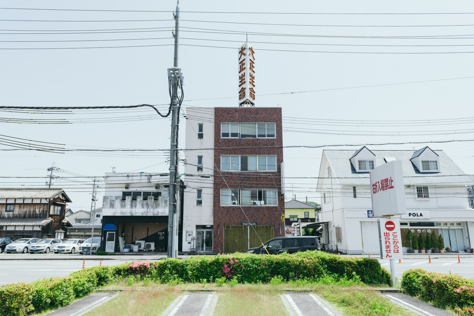 大正生命ビルは、イオンモール加西北条の真向かいで、北条駅から徒歩5分。郊外とはいえ好立地だ。ちなみにイオンモール加西北条の敷地は、かつて松下電気、のちに三洋電機(SANYO)の北条工場があった場所だ。しかし今もこのビルの屋上に掲げられているのは、2000年に破綻した保険会社の看板。伊藤と妻が散歩中にこの物件を見つけた時は、廃墟と呼ぶにふさわしいビルで、非常に安価で売りに出ていたという。まずは4階を整備して、自分たちの事務所を置いた。