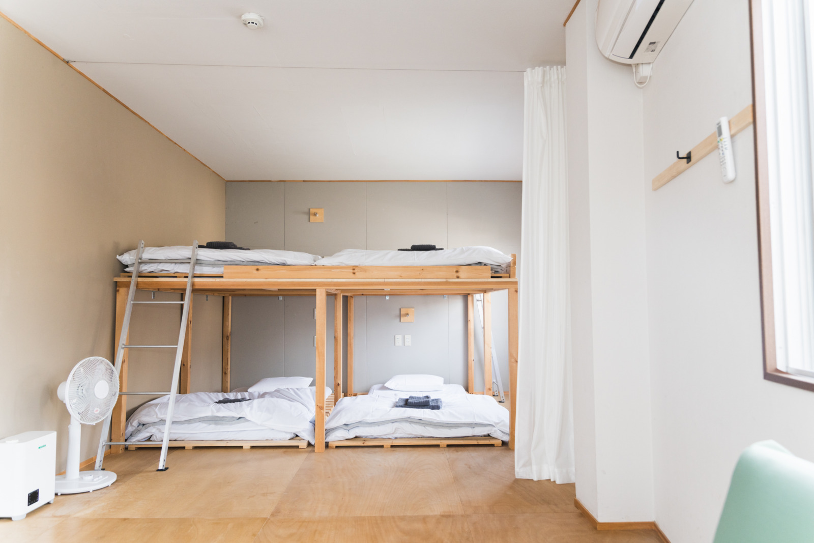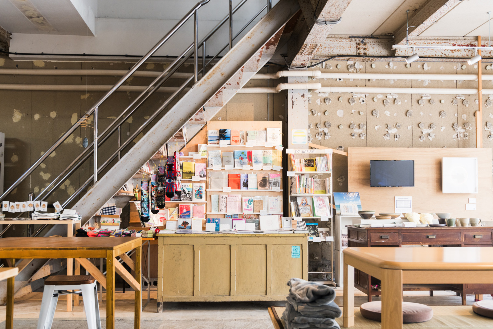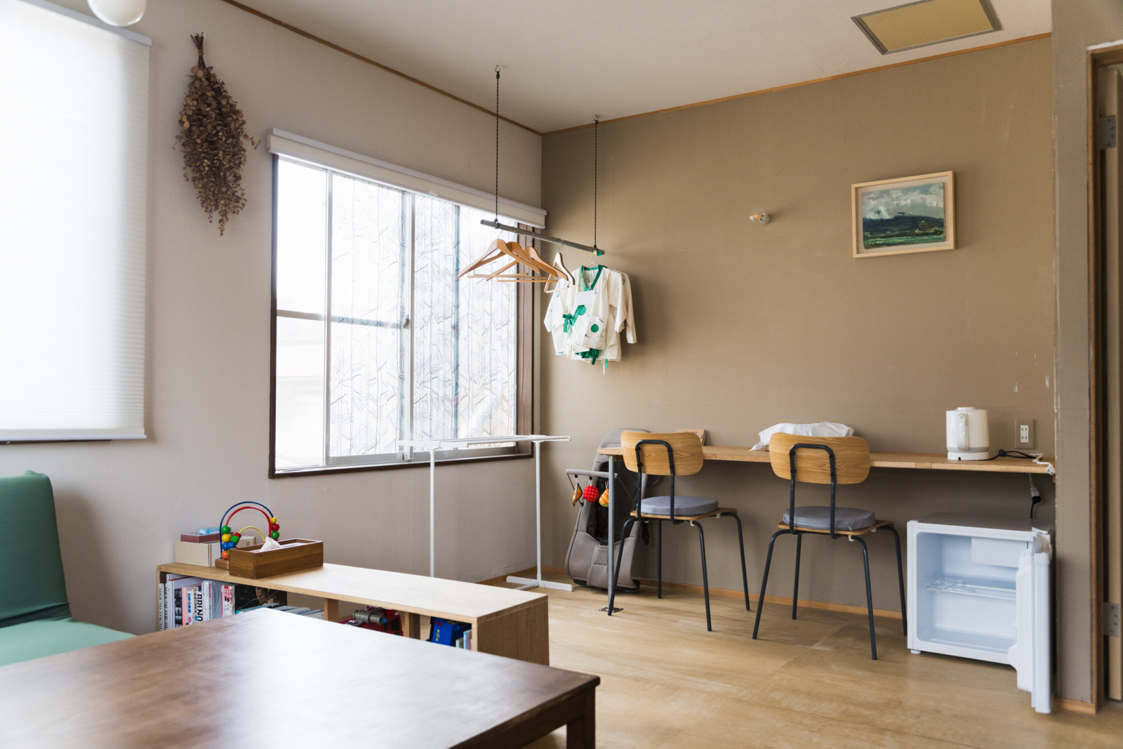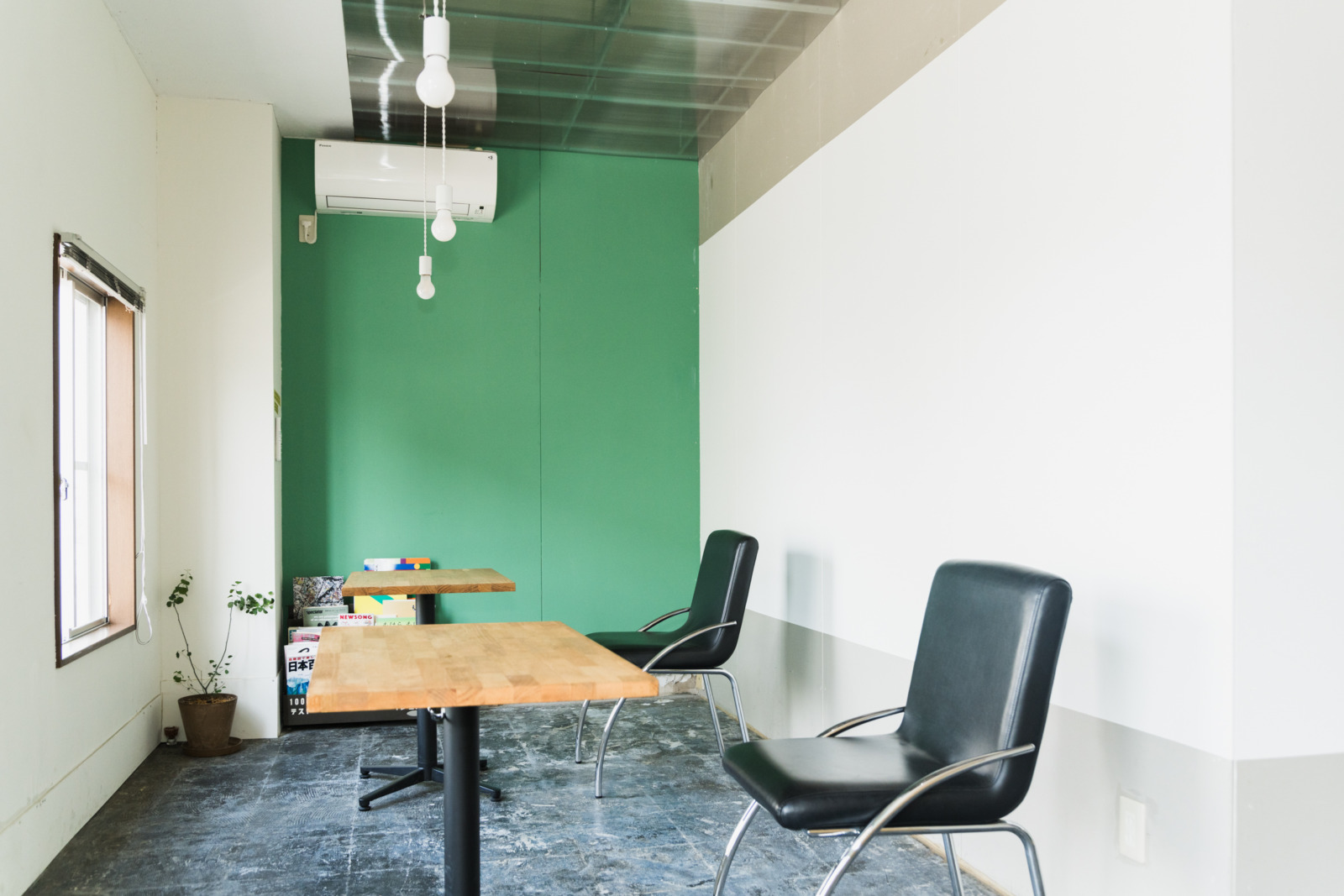 河野と田巻と二人の子どもたち、計4名の一家が鹿沼に移住したのは2022年3月だった。それからたった3カ月後の2022年7月、〈Center〉のプレオープンイベントを開催した。2階の宿泊フロアはまず1室のみ稼働させ、正式オープン後も少しずつ改装作業を行った。大工に相談しつつDIYで施工した部分も多い。2023年には、宿泊フロア全3室の整備を終え、1階多目的スペース奥にはアーティスト・イン・レジデンスで滞在する作家向けのスタジオも作った。