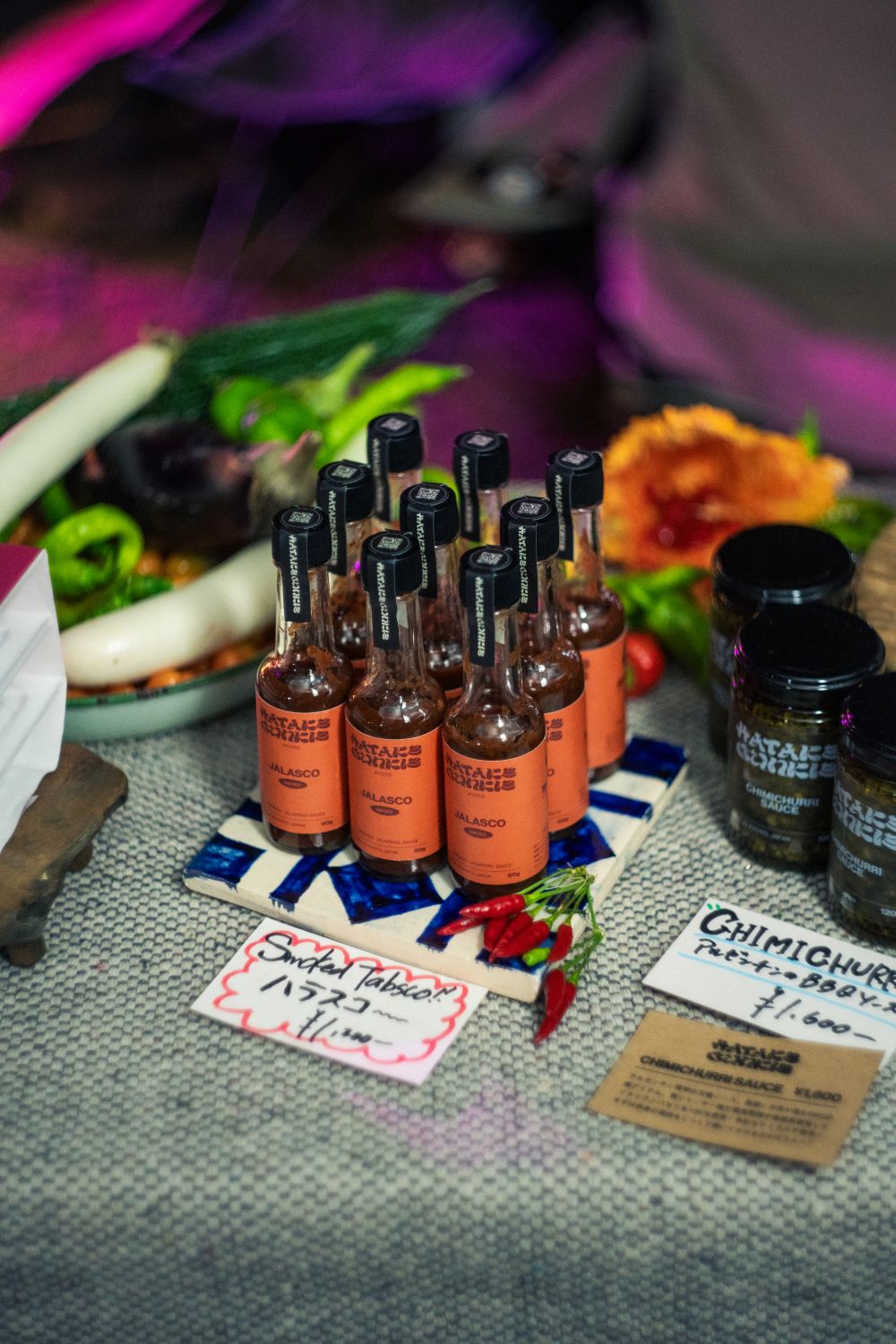 「最初はチミチュリソースを出して。イタリアンパセリとニンニクとオレガノを使ったソースです。あとは唐辛子を使ってタバスコも作っていますね。唐辛子って一つ植えるとめちゃくちゃ増えちゃって、育てたらとてもじゃないけど消費できる量じゃないんですよ。だから、みんなで面白いもの作ろうかな、みたいな」