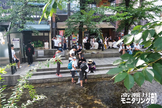 京都の街を北から南に走る人口河川の高瀬川。約400年の歴史を持ち、かつて高瀬船が通った元運河は今も京都の街を流れている。そんな高瀬川に集まる「いきもの」たちの世界を多様な視点で観察するのが「高瀬川モニタリング部」である。2022年よりアーティスト前田耕平により活動を開始し、高瀬川のフィールドワークを起点に様々な人々と部活動を行う。近年では「高瀬川モニタリング部のつくりかた」(NEUTRAL 京都、2025)など展示企画を行いながら、図鑑の発表を目指している。