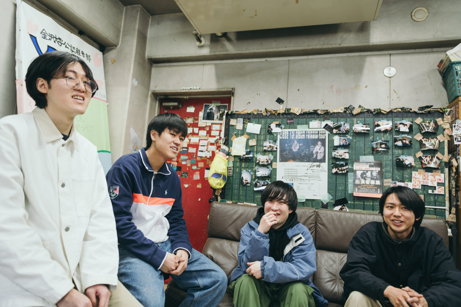ボーカルの久保は就職で一時金沢を離れるが、加賀谷は〈vanvanV4〉で働き、松田と内尾はサークルで活動を続け、4人はこれからも音を鳴らし続ける。街を媒介にしたつながりがあるからこそ、土地を離れても音楽の背骨は揺るがない。新曲のリリースも控える彼ら。次に見せてくれる景色は、また新たなシーンへとつながっていくだろう。