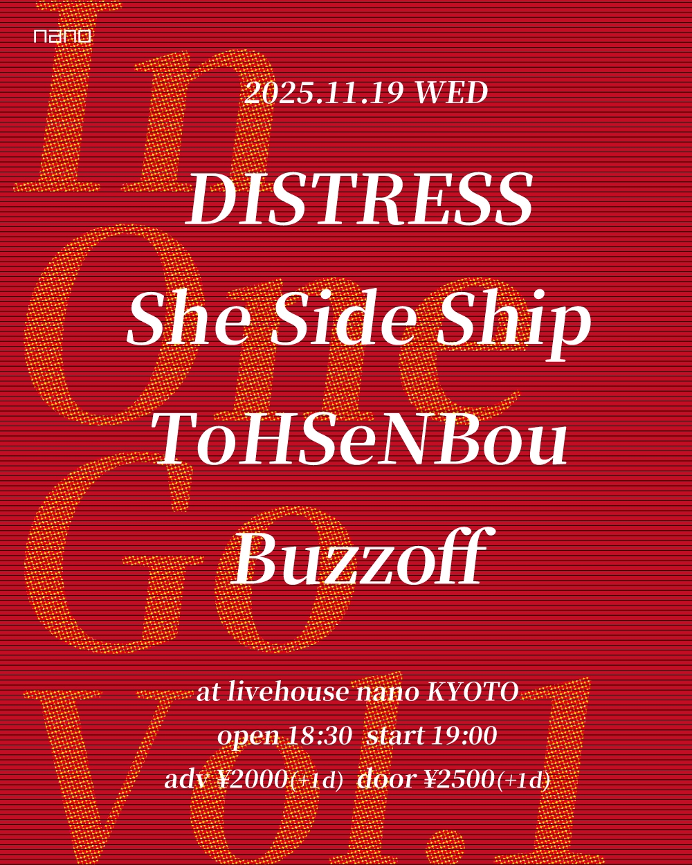 | 出演 | DISTRESS / She Side Ship / ToHSeNBou / Buzzoff |