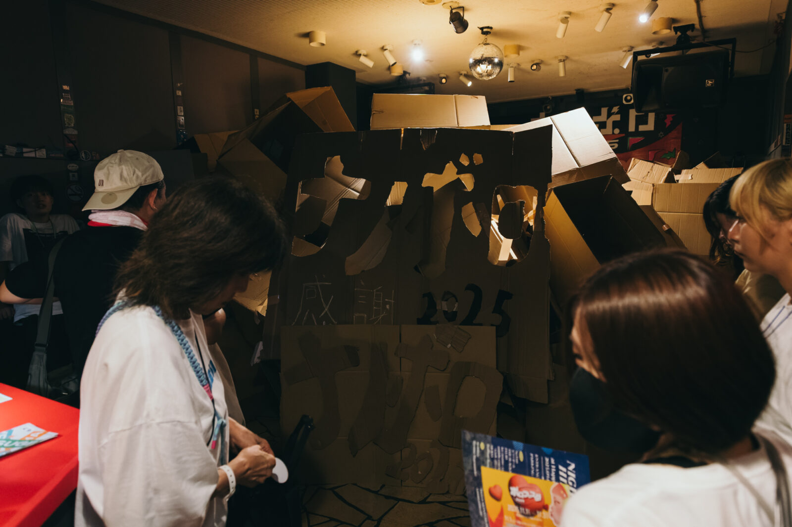 会場の中に入ると、大量に積み上げられたダンボールでフロアが天井まで埋まっている。ダンボールで作られた「ナノボロ2025」の文字からは、このイベントや『ボロフェスタ』が持ち続けてきたDIYの精神を感じる。