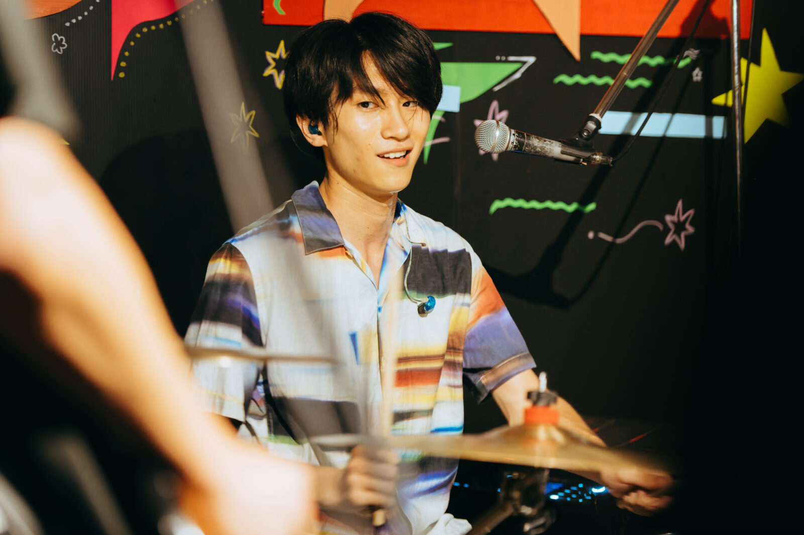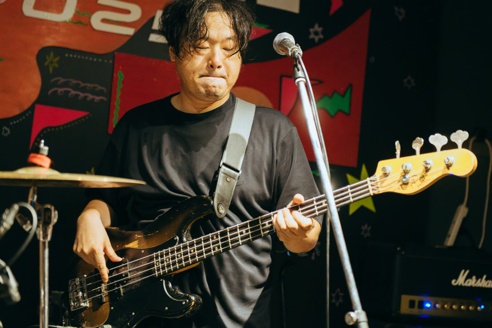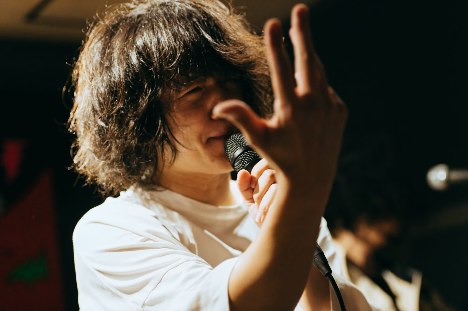 岡山県で生まれ育ったあさひが、実際に京都に住んでいるからこそ感じた西大路通りあるある。「靴紐解けてたら教えてくれる街」という情景の浮かぶ歌詞も聞こえてくると、何人かの観客に温かい笑顔が。さとうじゅんとは音楽性が異なるものの、このバンドもまた、リアルな生活拠点・京都の姿を描き出していた。