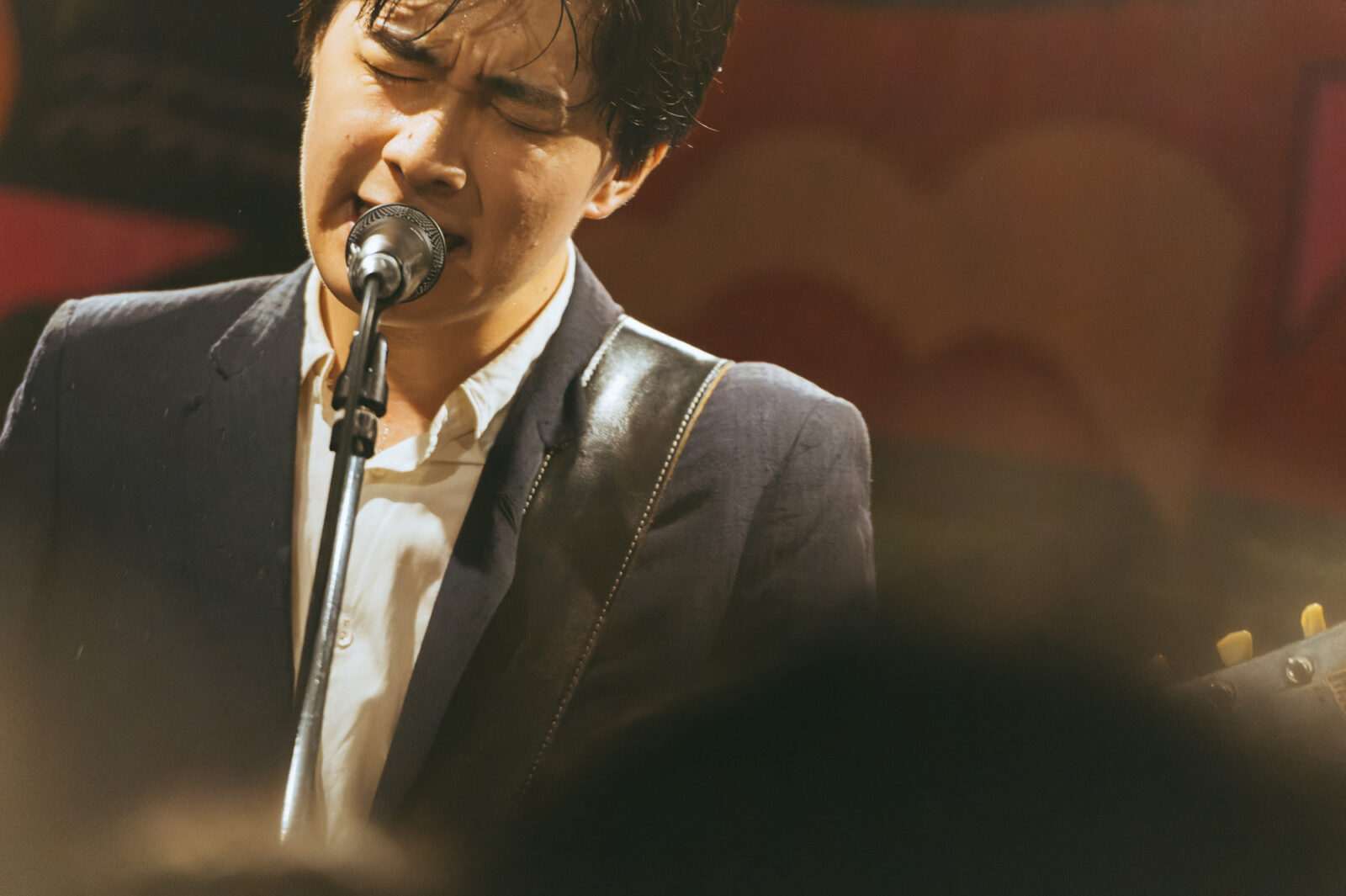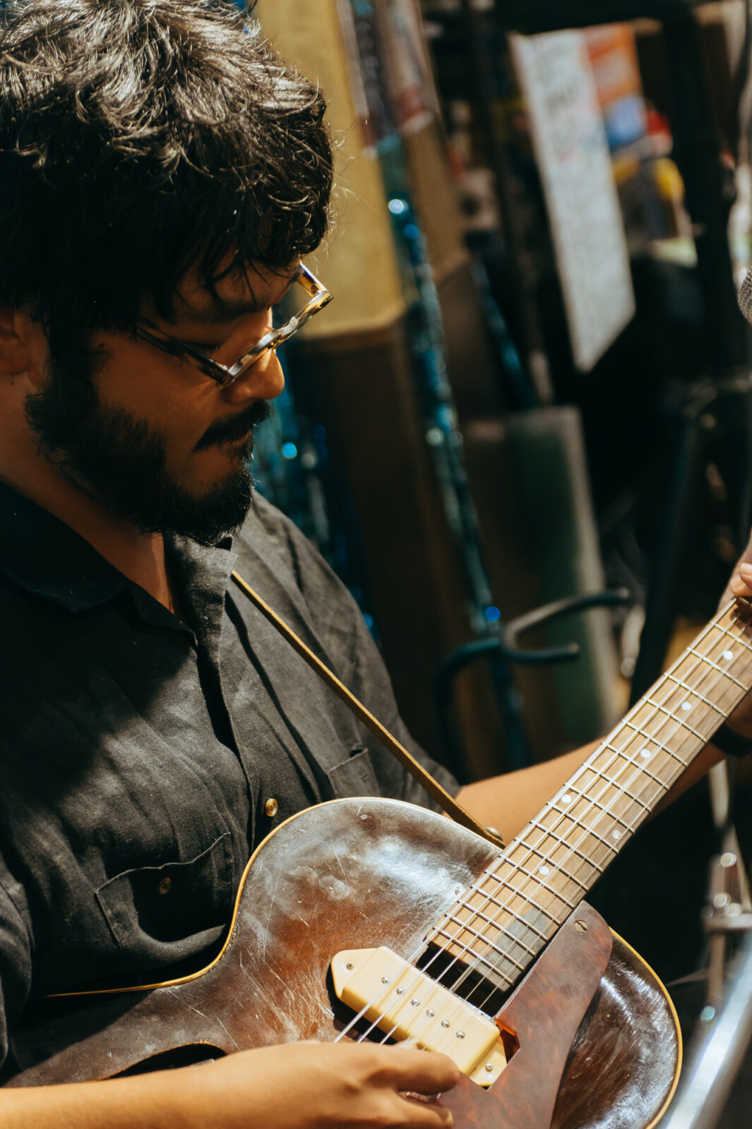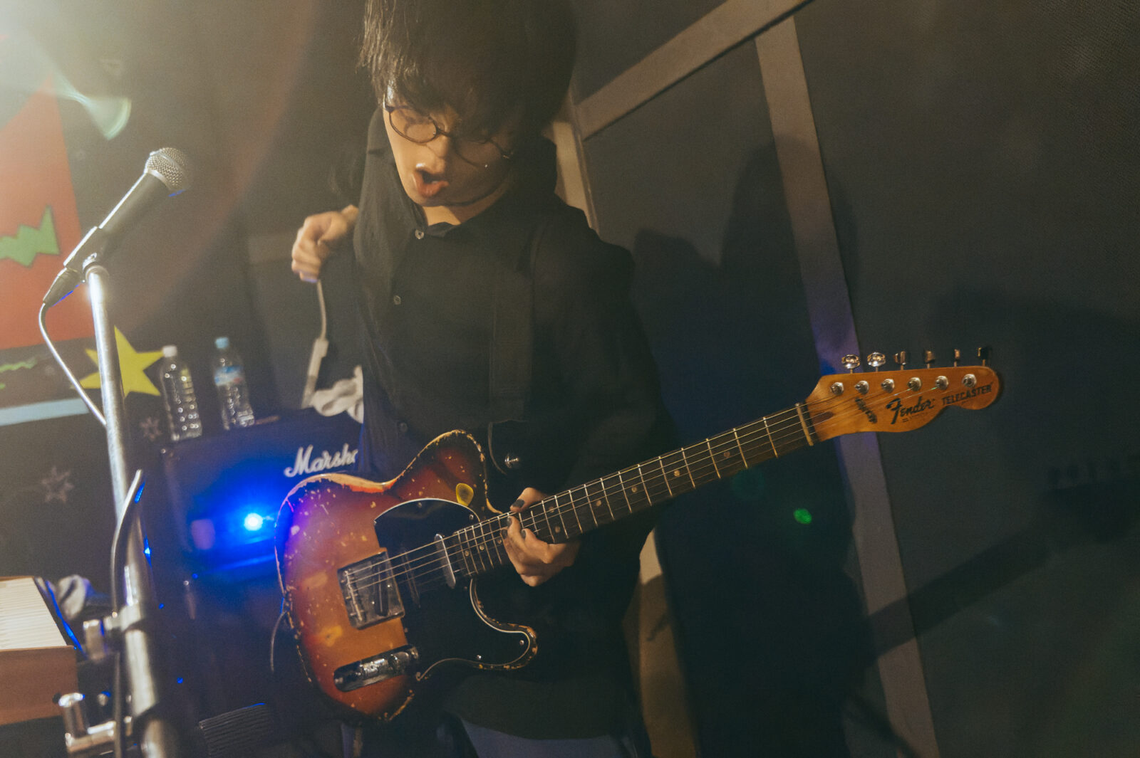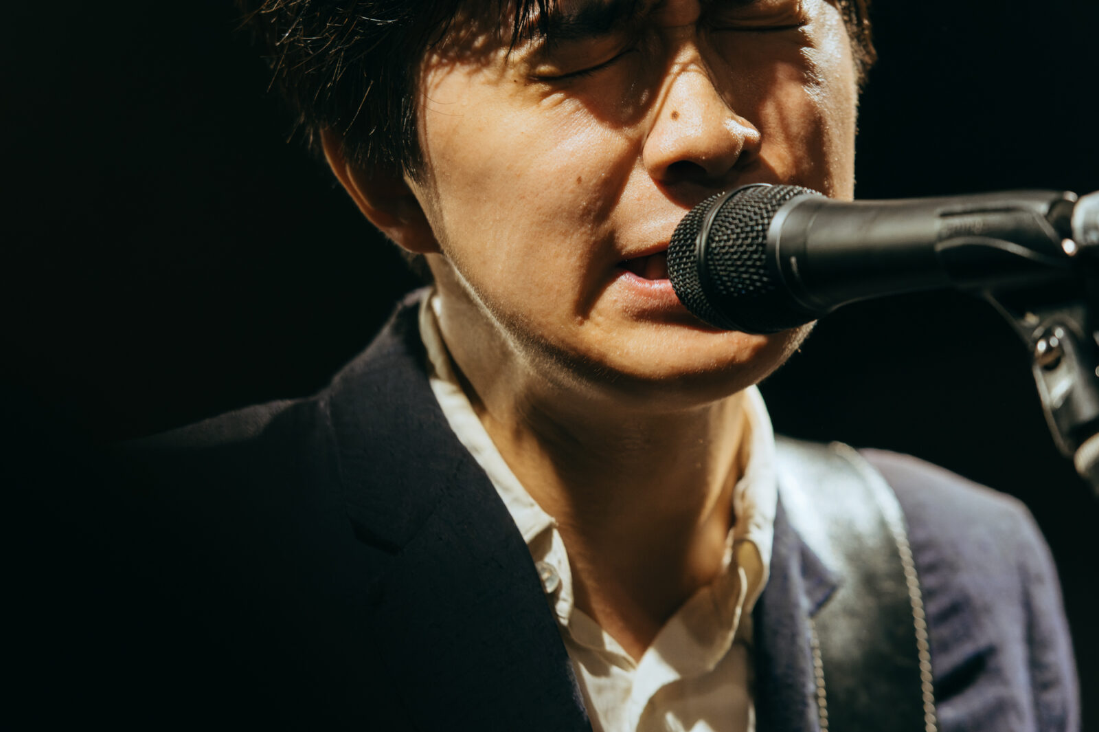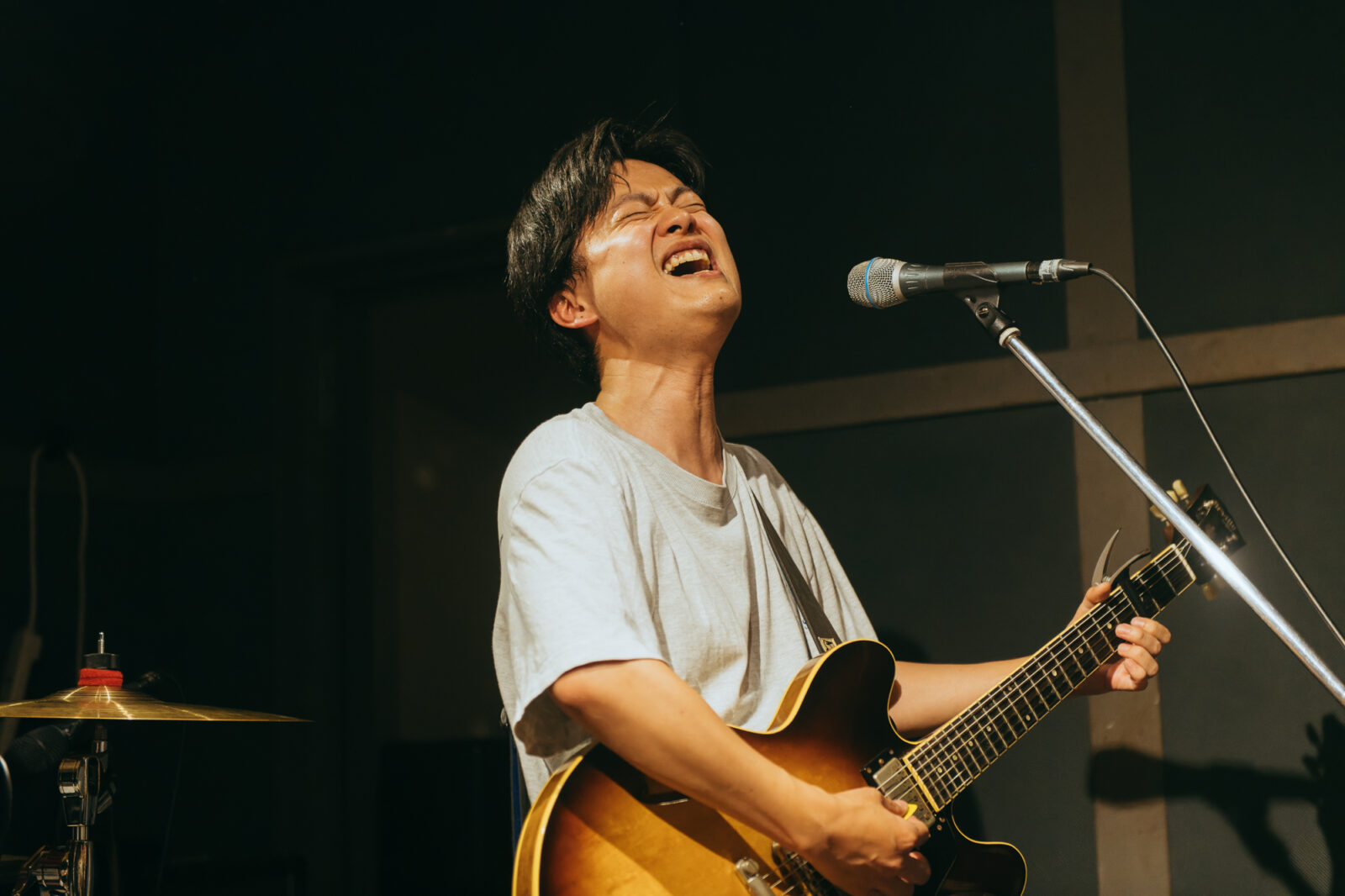 気さくなMCでライブが始まる前から人々を惹きつけ、空気が綻び〈◻︎◻︎◻︎ん家〉のスペースはあっという間に満員になった。その雰囲気のまま、流れるように曲へ入る谷澤。声の揺らぎとアコースティックギターの響きが牧歌的な風情を生み出す。“悲しみひとつ”では、情感たっぷりに生み出される声の波で強弱をつけながら、「悲しみの表現」と「寄り添う包容力」の両方を実現させていた。“店”は、愛媛、長崎、高知、などの地名が次々に挙がる楽曲。