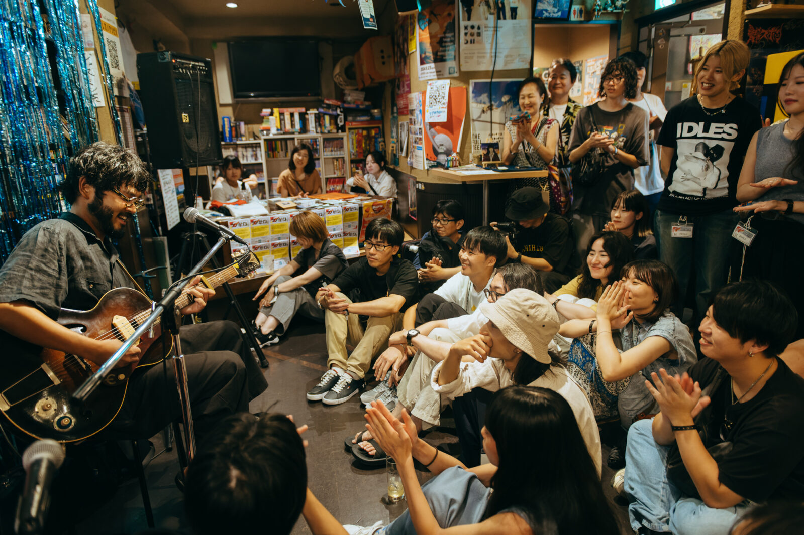 と歌詞を『ナノボロ』風にアレンジすると、谷澤の周りに扇形に身を寄せ合って座る観客たちに笑顔が広がった。谷澤の歌と笑い声が混じり合うたびに、その場にいた誰もが少しずつ心を開いていくようだった。『ナノボロ』というノートの上に、また一つ、おおらかな手書きの文字が残された気がした。