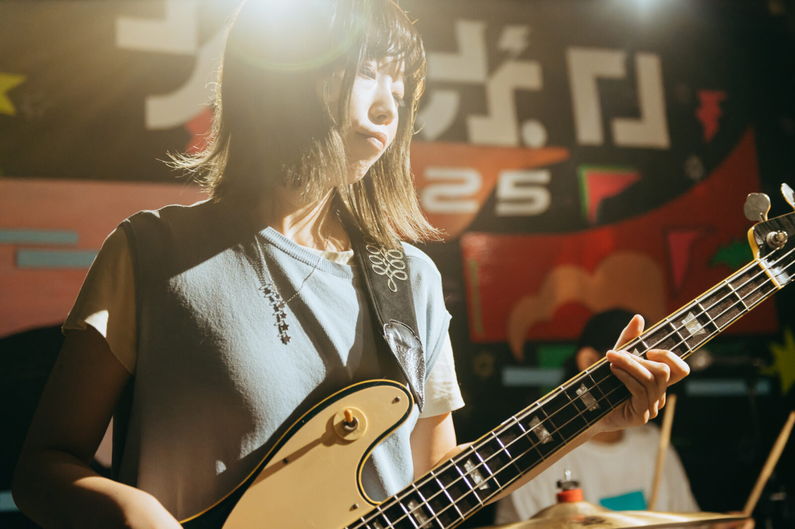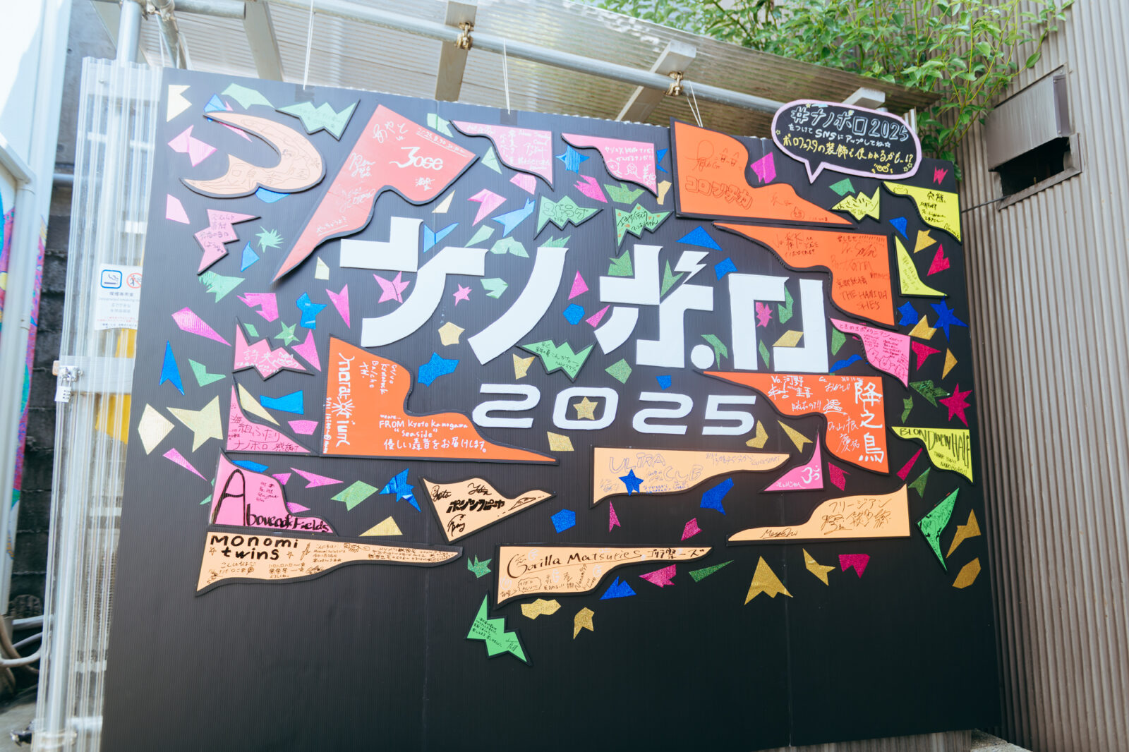 会場の外に掲げられた『ナノボロ2025』の看板には、出演者のサインやメッセージの書かれた小さなパネルが貼られていた。大きさも形も色も様々で、出演者それぞれの個性が感じられる。それを見ているうちに、このフェス自体が、自由に音楽や言葉を書き残して帰れるノートのように思えてきた。この2日目も、出演者それぞれが自分の音や言葉でそのページを埋めていった。