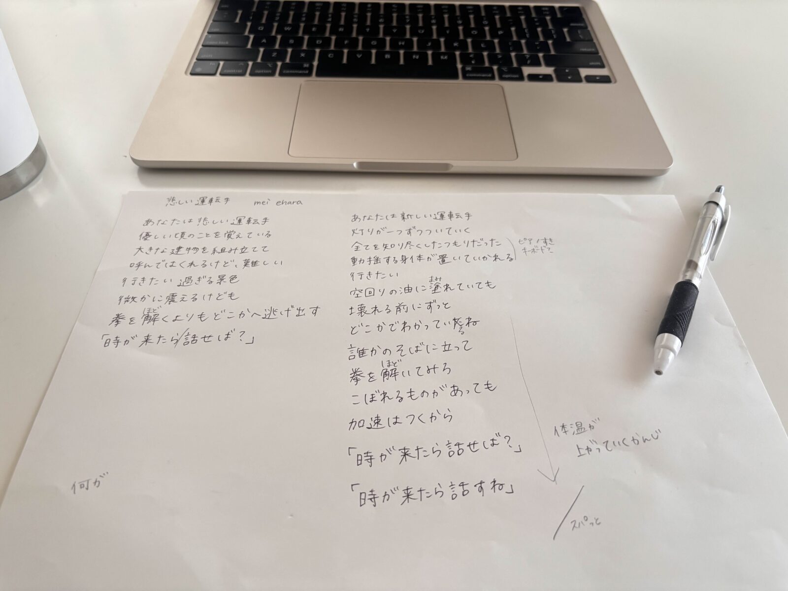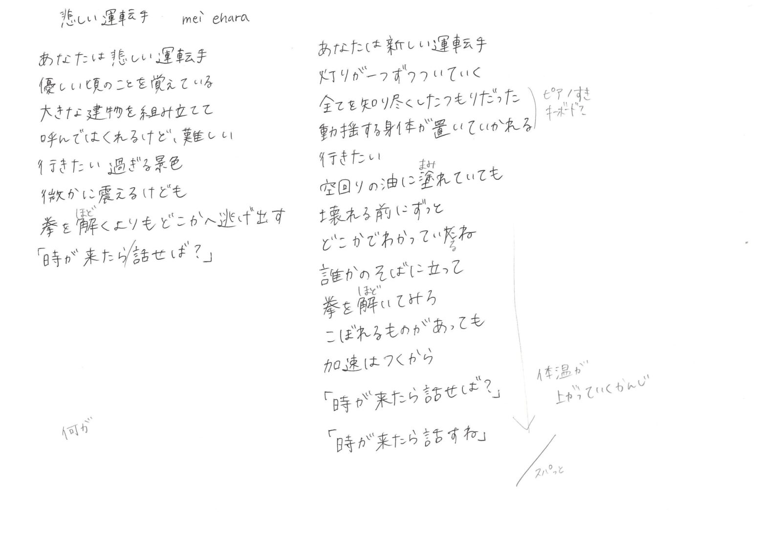 模写を通じて味わう現代の歌詞-第1回 mei ehara“悲しい運転手”
