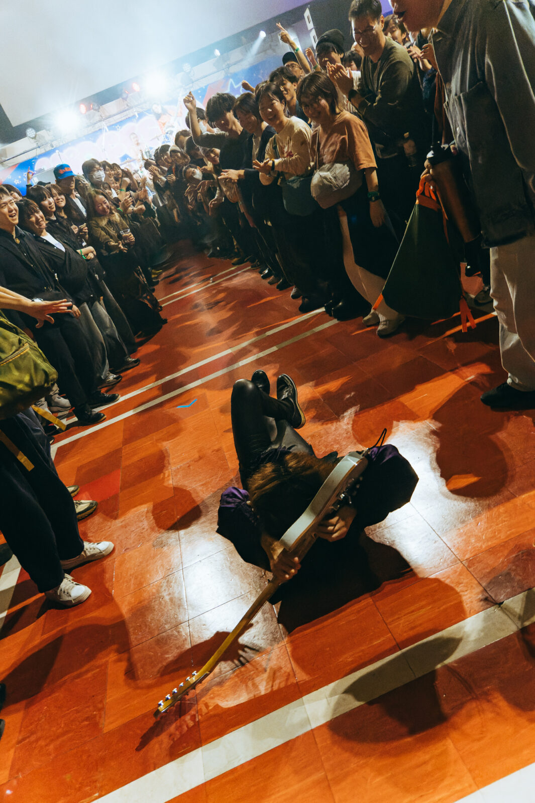 「『ボロフェスタ』は10年ぶりの出演」とMCをしながら、一升瓶で水分補給をした廣井。彼は、国歌“君が代”の合唱から始まる“日本”の途中で「京都の地を踏みたい」と言い始めた。そしてステージを降り、ホールの出入り口付近から〈BIG RIGHT STAGE〉の上に至るまで、ホール内を広く巡礼。観客に「今何時?今何分?」と時間を確認しながら、廣井はフロアを歩き回れるだけ歩き回ってステージへと戻っていった。KenzooooooとShimizuが降壇して八八のライブはこれで終わりと思いきや、最後に残った廣井がベースを背面弾き。暴れながらも観客とともにある八十八ヶ所巡礼を観た後の人々の表情は、清々しい笑顔だった。
