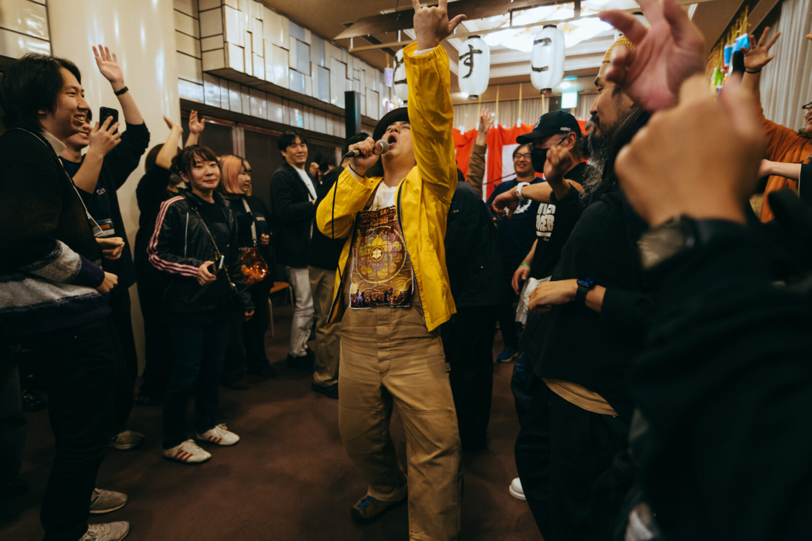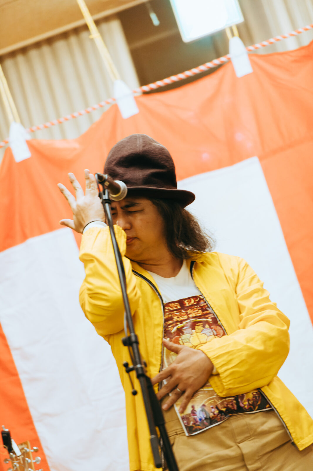 一方再びとなるボギーは、朝の野外ステージ出演からおよそ8時間を経て〈どすこいSTAGE〉に立っていた。集った観客を座らせ、何やら言い聞かせている。