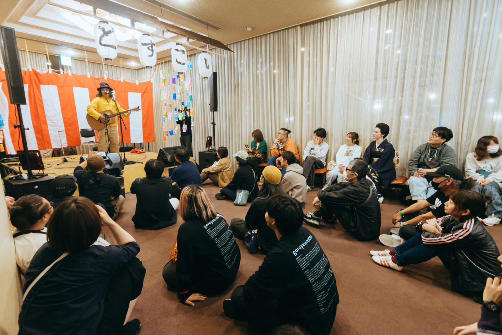初日からここまで過ごしてきて『ボロフェスタ』は、誰のどんな孤独にも開かれたイベントだと常々考える。かつて、京都に出てくると同時にコロナ禍に見舞われ、いつも一人で音楽を聴く大学生だった筆者も『ボロフェスタ』に孤独を解かされた一人である。音楽の中で出演者と一対一になるような感覚に包まれるのもいいし、どさくさに紛れて出演者や他の観客と一緒になって盛り上がる流れに乗っかってもいい。音楽という表現が自由である限り、受け取り方も応え方も自由だ。その大らかさが前面に出たこのイベントだからこそ、孤独の多様な着地点が見つけられるのではないかと思う。