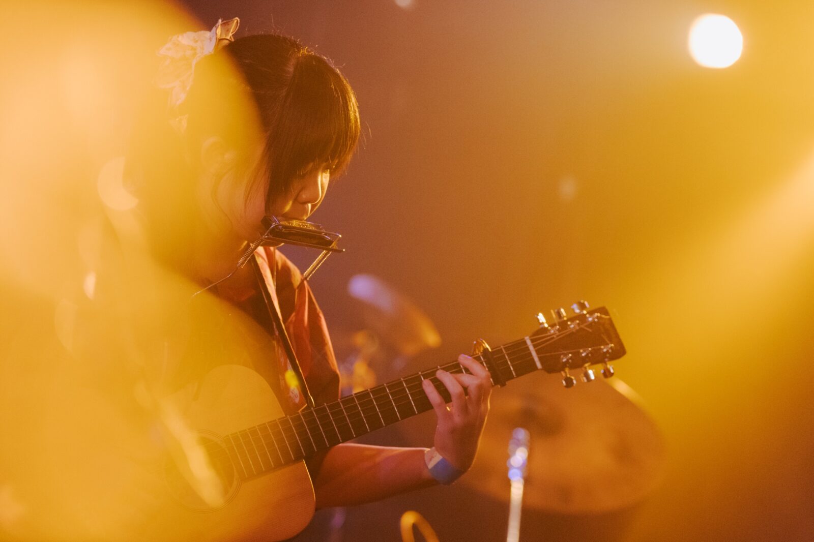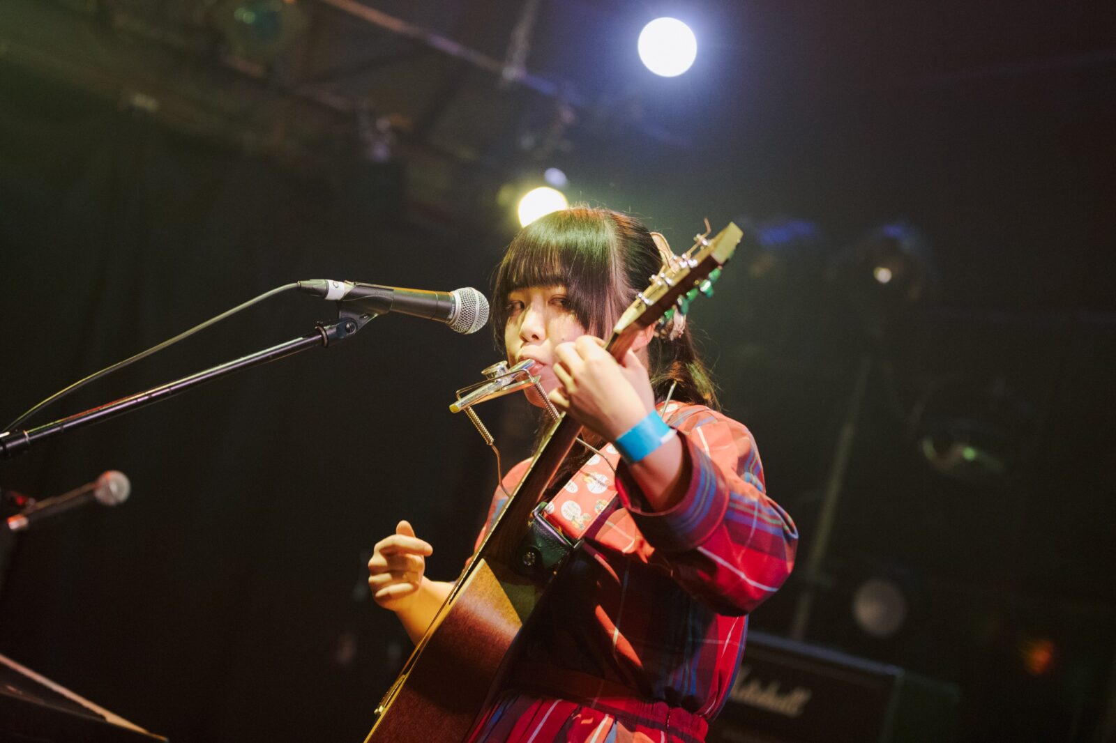 アコースティックギターに持ち替え、高らかにカズーを吹き鳴らして始めた“嫌太郎”は一転してカントリー調の軽快な楽曲だ。威勢のいいギターストロークだが、細かいオブリガートが実にテクニカル。またピックを使っていないことからも、アコギなのにウィルコ・ジョンソンを強烈に思い浮かべた。ここまで述べていることからも、「たまから強い影響を受けている人」の枠には全く収まり切っていないのである。