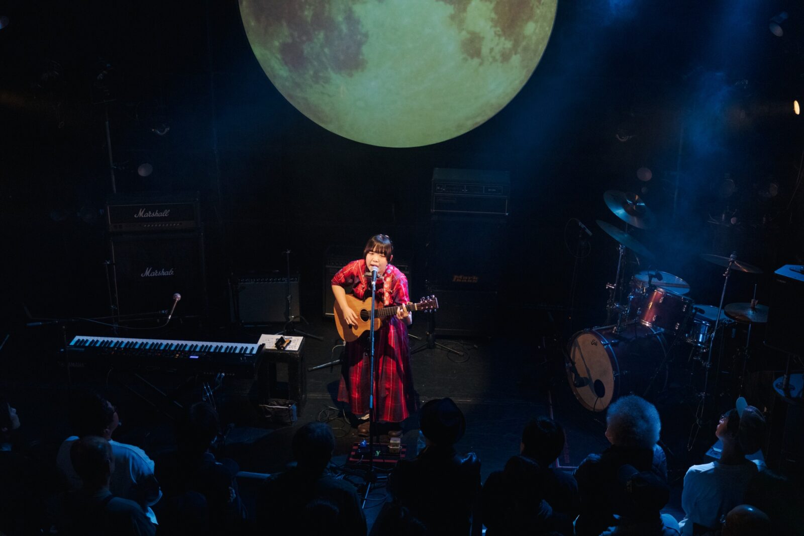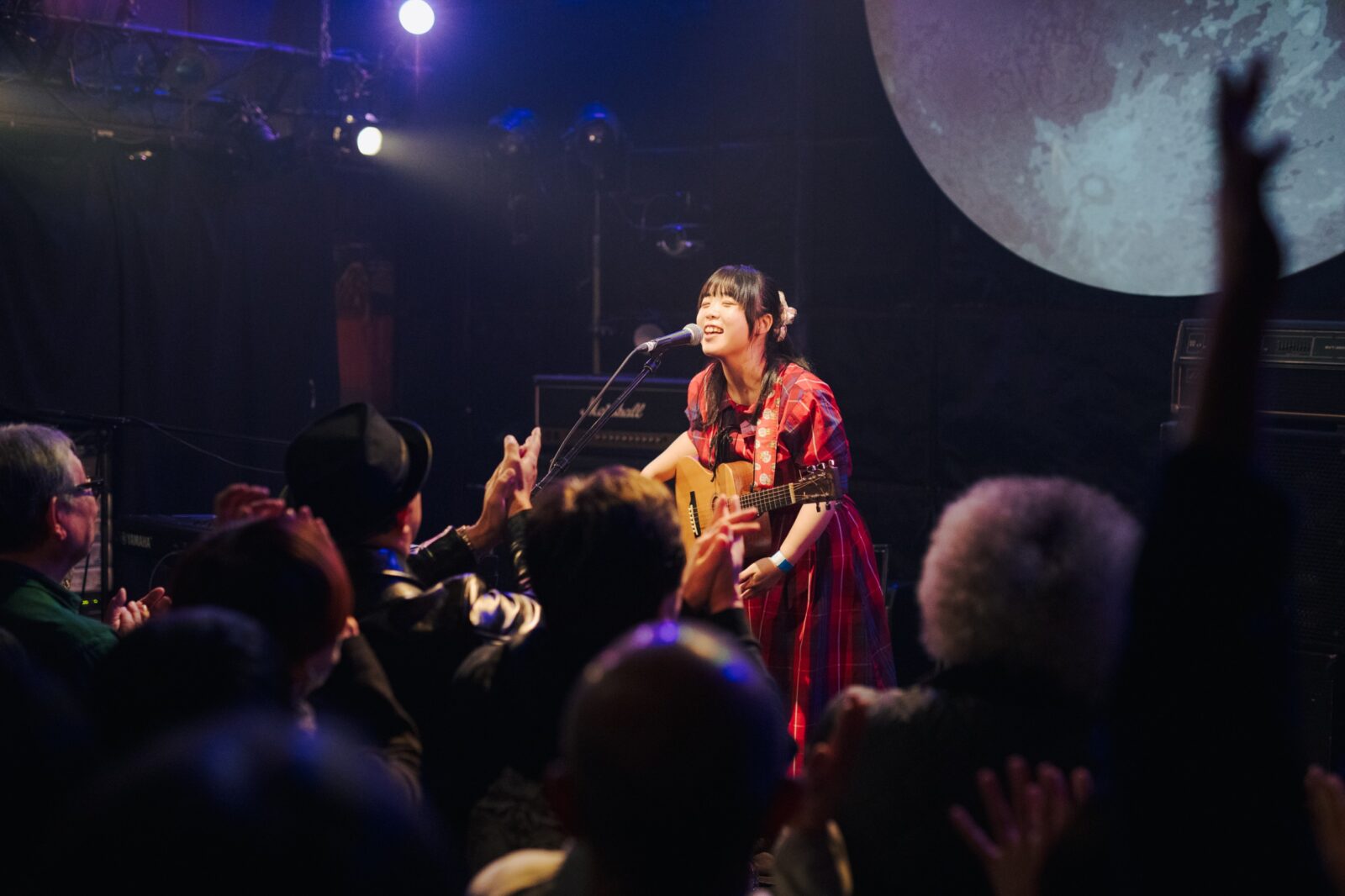 その後は最新リリースの“イエスマン”、“恋焦がして”、そして再びキーボードに移り新曲“晴れるよ”、そして“ラブホテルで働くということ”と披露していく。“マジシャンの恋”では最後に見事なアップテンポのピアノソロで手拍子を巻き起こしてステージを降りた。林の宣言の通りこのまま終演となるはずが、鳴りやまない拍手に古山が再登場。想定外でたじろぎながらも「私がライブをするときに、楽しみにしていること。それは演奏することと、みなさまとお話すること、そしてお酒を飲むことでございます」と流暢に締めくくり、西岡恭蔵“プカプカ(赤い屋根の女の子に)”のカバーでさらに会場を沸かした。この日の4日後に25歳を迎えるという若さながら、日本の歌謡曲における最良の遺伝子を受け継ぐ存在としてのオーラをひしひしと感じ取った。