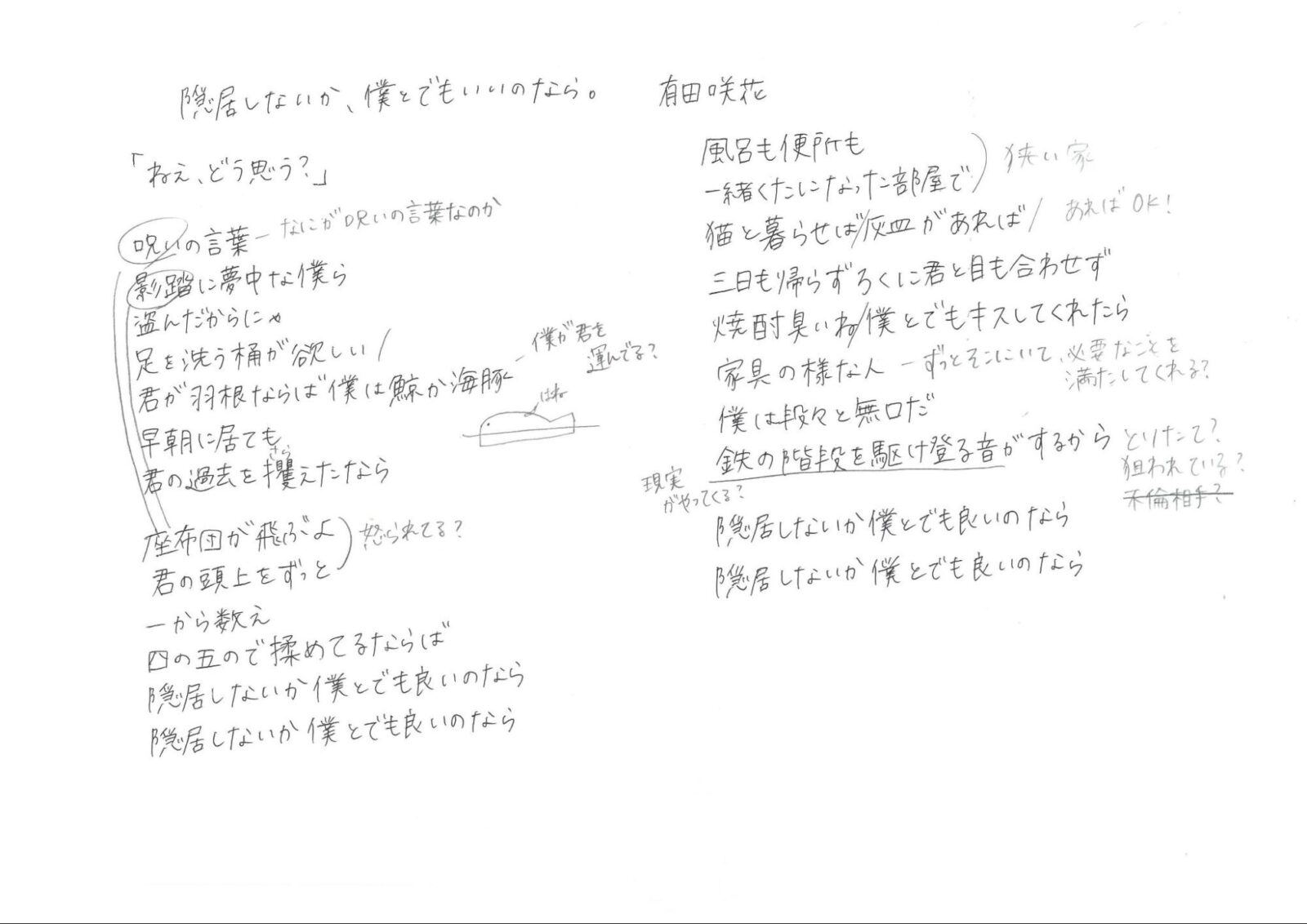 模写を通じて味わう現代の歌詞-第3回 お題:有田咲花 “隠居しないか、僕とでもいいのなら。”
