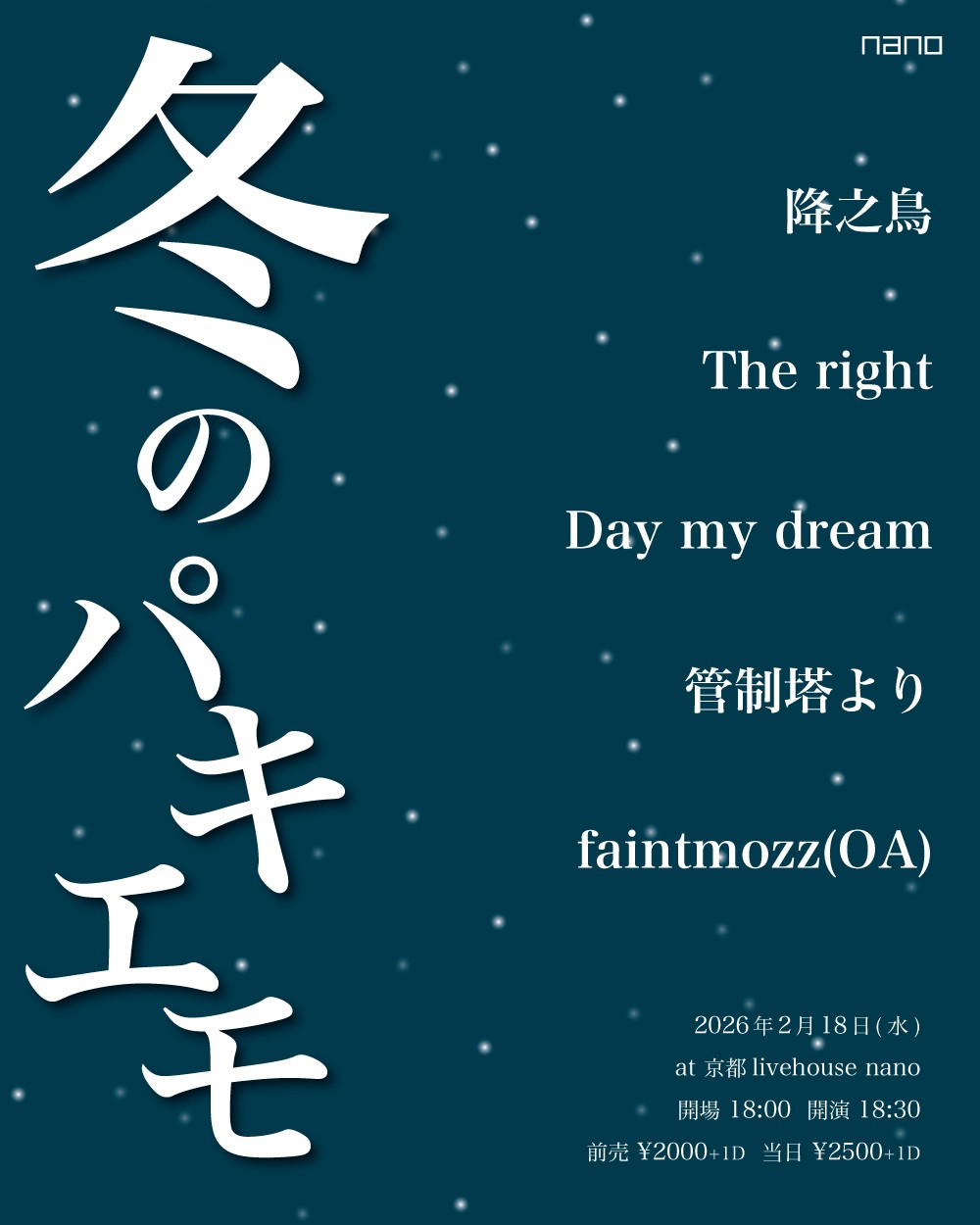 | 料金 | 前売り ¥2,000 / 当日 ¥2,500(+1ドリンク¥500 別途) |