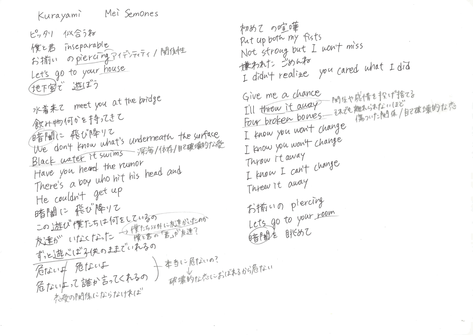 模写を通じて味わう現代の歌詞-第4回 お題:Mei Semones “Kurayami”