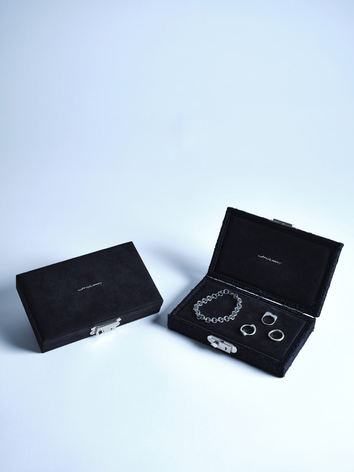 また、上質な絹糸にステンレス糸を織り込むことで、しなやかさの中に現代的な緊張感を加えている。光の受け方によって繊細に表情を変える素材感が、静謐でありながら確かな存在感を生み出す。今回のコレクションでは、こうした伝統素材をより身近に感じられるよう、デイリーユースを意識した小物類も充実させたという。