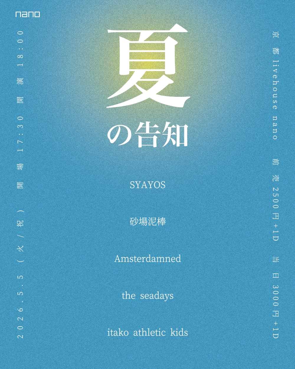 | 出演 | SYAYOS / 砂場泥棒 / Amsterdamned / the seadays / itako athletic kids |